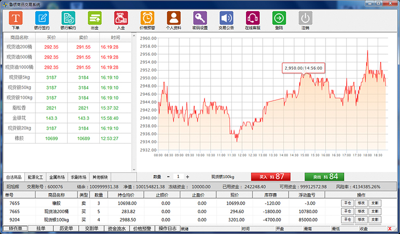 交易系统平台包括前后台功能齐全,各种用户、代理、交易商功能齐全完备,各类运营功能可以满足交易中心需求,充分考虑新型交易中心自动化运营模式,而且交易平台安全、稳定、前后台功能强大占用计算机资源少,运行速度快,还可下载历史数据和图表,广受投资公司和投资者的青睐。